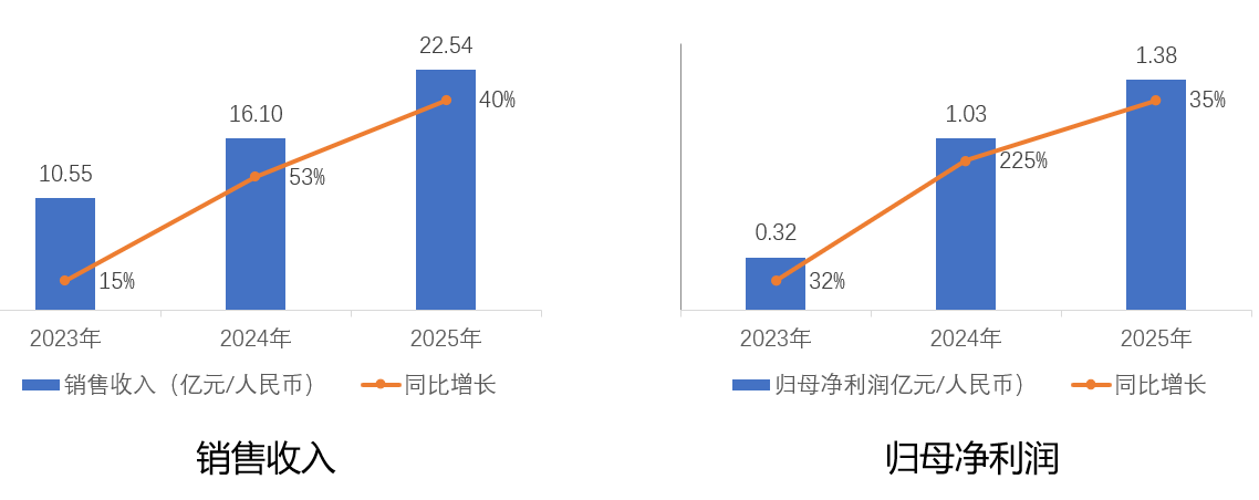 •销售收入22.55亿元人民币,同比增长40%; •归母净利润1.38亿元人民币,同比增长35%。