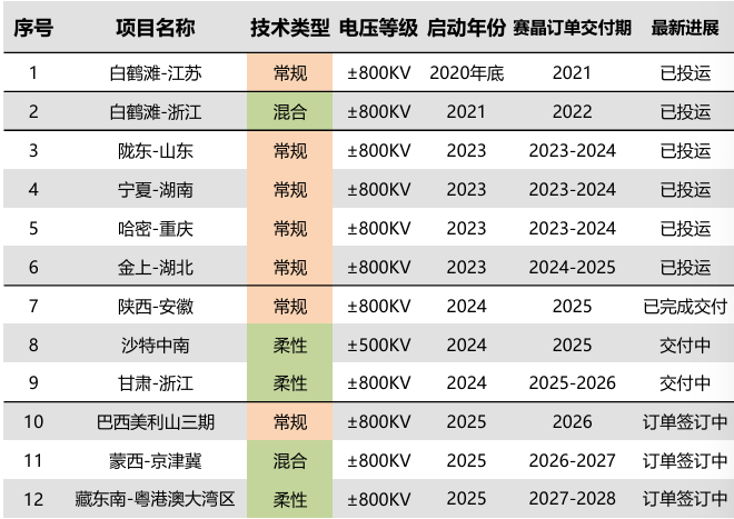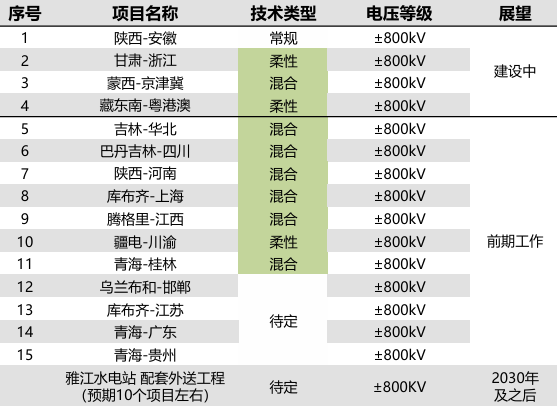 “十五五”部分特高压直流工程