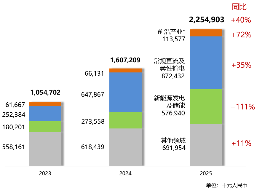 “十四五”期间,特高压直流建设呈现“前期落后,中后期提速”的特点,共开工12个特高压直流工程,其中,10个在2023至2025年开工,且2024年及以后开工项目,以柔性技术为主。受益于行业龙头地位及项目数量增加,本集团在常规直流及柔性输电2025年实现销售收入8.72亿,同比增长35%,2023至2025年实现86%的销售收入年度复合增长率。